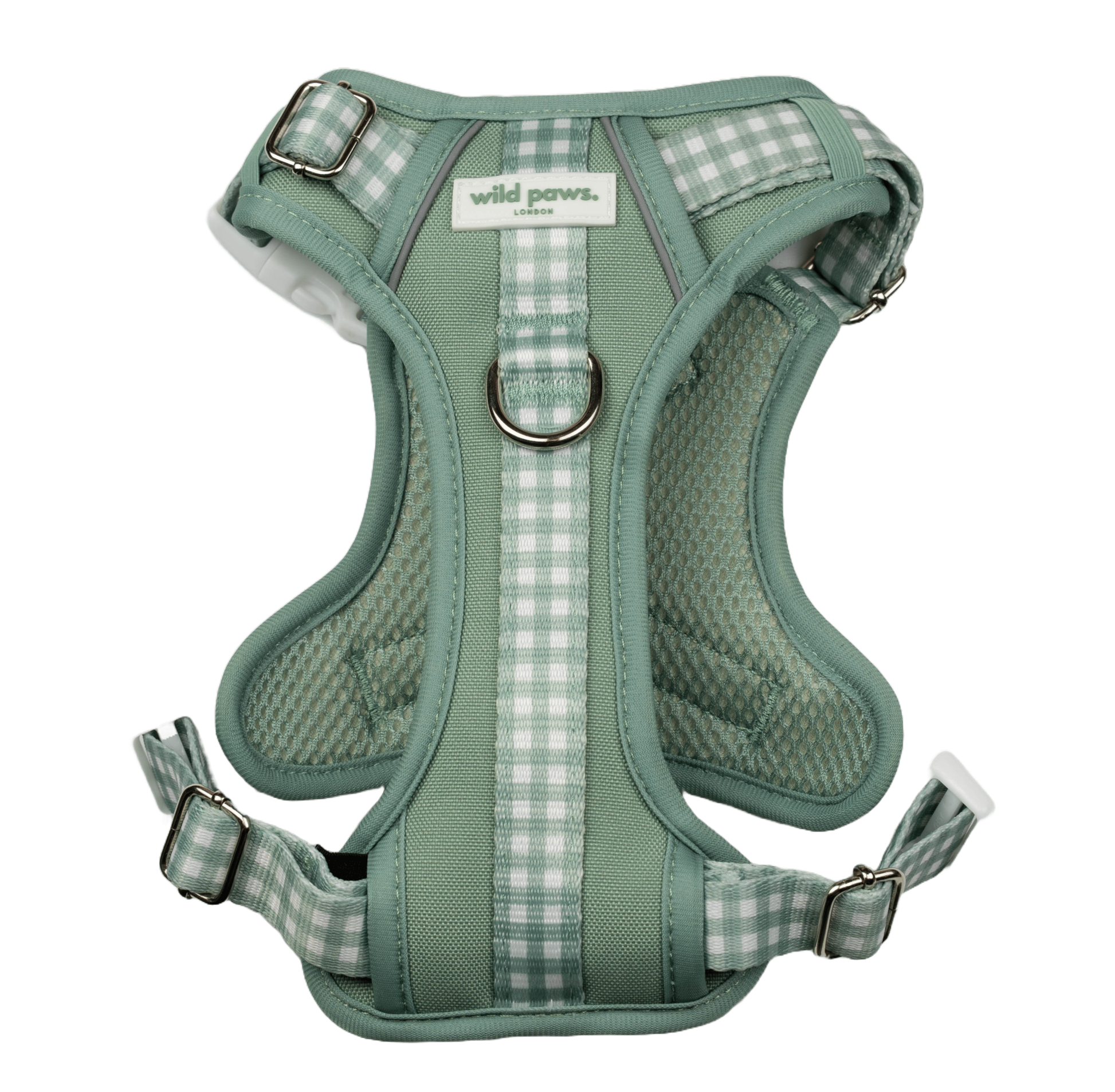 The Wild Edition Harness in Matcha Milkshake is where style meets adventure. Featuring a soft sage green base with charming white gingham accents on the straps, chest panel, and padded handle, this upgraded 3-clip design ensures a secure, comfortable fit for every pup (XS–XL). With longer chest pieces and updated sizing, this harness is made for movement — and it’s finished with elegant silver hardware for a polished touch.